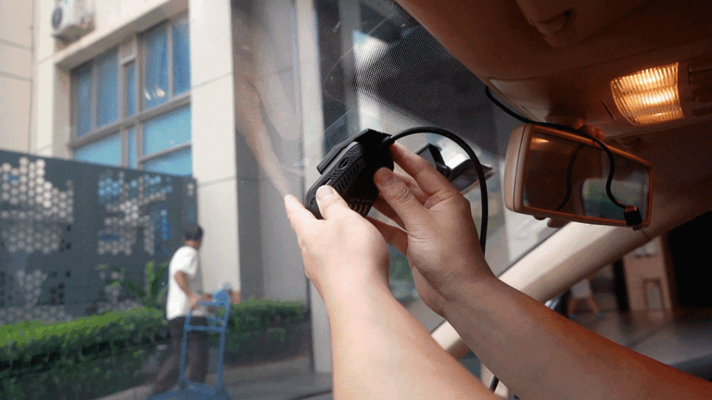 The small form factor allows discreet installation behind the rearview mirror without blocking the driver’s view.