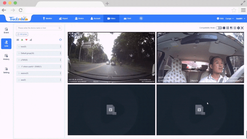 Powerful LTE connectivity enables the live monitoring of the vehicle’s interior and exterior via an online platform; while the critical video clips in the device allows for on-demand playback after the fact from anywhere, at any time.
